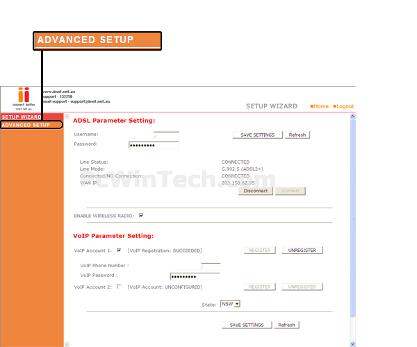 Once logged into your router click on the "Advanced Setup" link on the left of the page.